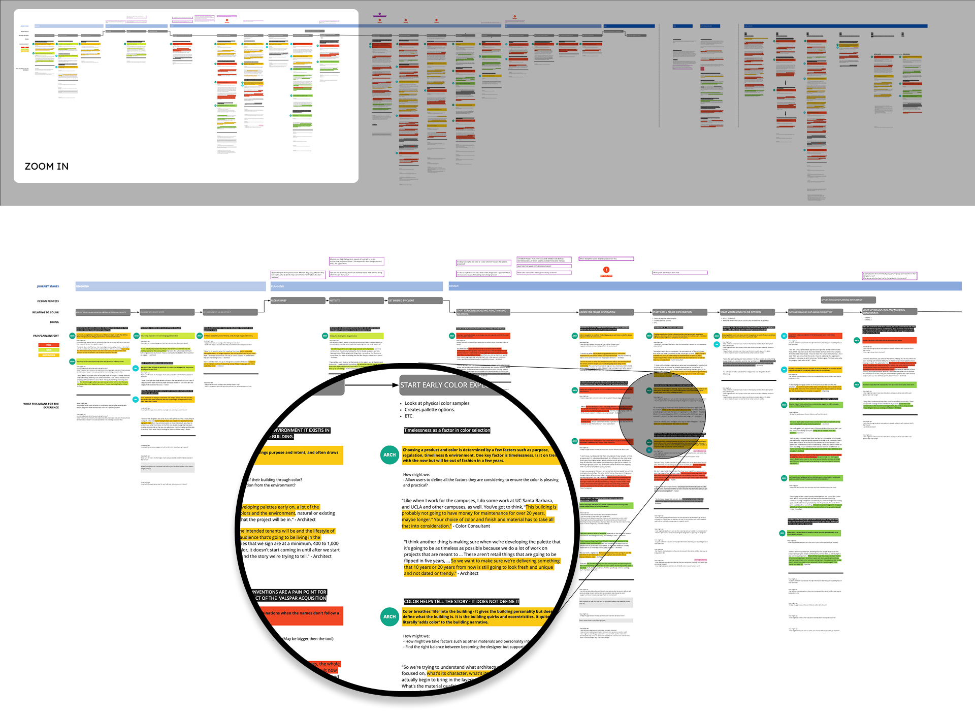 We built a service blueprint along with an experience map to identify ideas that would address pain points at different moments within an architects journey.